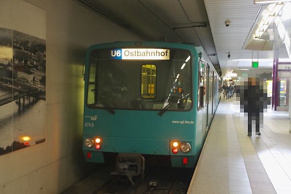 大枚叩いて行った欧州鉄旅、楽しい時はアット言う間に過ぎ去り帰国当日となっても、 帰国便が午後なんて時にゃ、時間まで未練がましく近場で駅撮りしちゃおうてぇ事で、 グーグルマップ見るてぇっと、フランクフルト東って駅が貨物ヤードに接しているのを 発見したんで、ほんじゃ此処で貨物レの駅撮りでもてぇ事になりました。どうせ行くなら 未だ乗った事の無いUバーン使って到着したフランクフルト東駅は、ホントにこの駅に