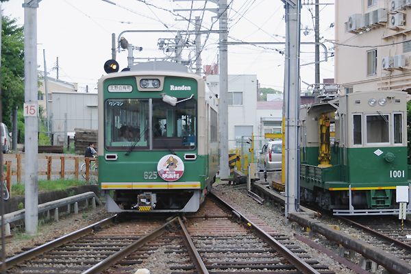 北野線が分岐するジャンクション帷子ノ辻、駅撮りするにゃ最適なぽいんとなのです。 三方から列車が進入して来る帷子ノ辻は、度の方向にレンズを向けても先ず先ずの 駅撮りが出来ちゃうのです。北野白梅町発のモボ621形は、4番線ホーム端より撮影、 今は西院の車庫に居場所を代えちまった、モト1001の写り込みもラッキーなのです。 京福北野線 帷子ノ辻