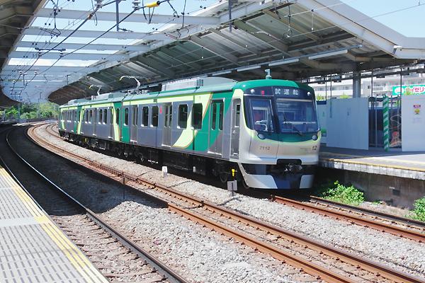 溝の口以外のポイントなんざぁ、知らない、調べて無いの相変わらずの思鉄ポリシー、 儘よで降りた藤が丘の上りホームにゃ、多摩川・池上線用の7000形が試運転表示で 停車中でございました。この新7000形って少し前甲種を長津田で受けたヤツですぜ。 この新造車が運用に入いちゃうと、今度ぁ7700形はお役御免になっちゃうんですねぇ。 藤が丘