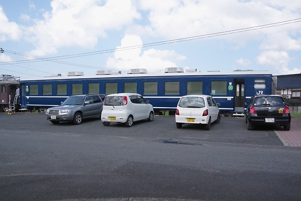 見るてぇっと、駐車場の線路側に12系客車と箱型の電気機関車を発見いたしました。 この客車はオロ12 6号車は、普通車だけだった12系をカーペット敷きに改造してロに 格上げした車両をライダーハウスとして再利用したものだそうです。そして12系よっか