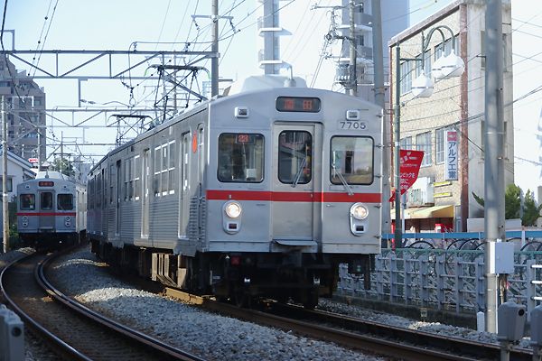 駅から上り方面最初の踏切からのスナップ、リニューアルされた下丸子に歌舞伎色の 弟分7600系と7907Fの並びでございます。しかし、如何して製造からの経年の少ない 7600系の方が先に引導渡されたんだろう?電気に疎いアッシにゃ判んないんですよ。 東急多摩川線 下丸子 2010-11