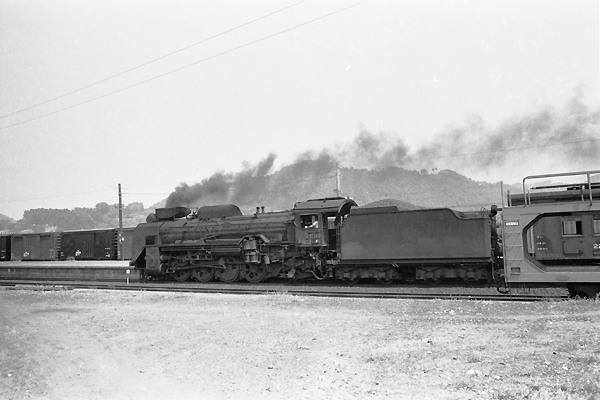 次に現れたのは、大騒ぎしたDD51よっか、Dが一個少ない浜田機関区D51145号の 牽引する貨物列車でございます。コッチもD51は、今でも走ってるとこ見られるけど、 コキはおろかワムやトキの種々雑多な黒い貨車引っ張てんとこは、見られなのです。