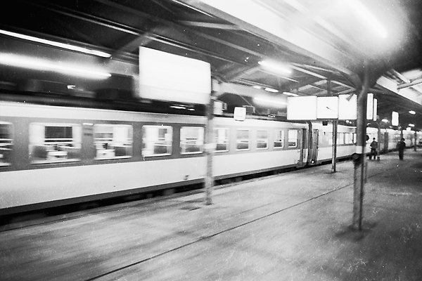 右側半分位んとこに3面6線の頭端式ホームがございました。そしていきなりの夜景と なりましたが、それは当時四国でも夜行列車のスジがあって、そいつに乗るんで夜の 夜の高松駅にいたからなんです。キハ58系が4本停まっている夜の高松駅、その内 真ん中2本の右が0:58発603D急行うわじま2号宇和島行き、左っ側がアッシの乗った 0:19発733D普通夜行列車中村行きでございます。普通列車って言ったって、733Dは