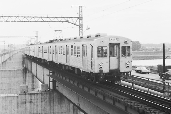 次は当時の東急フラッグシップ車オールステンレス7000系大井町行きでございます。 しかし、未だ沿線殆んど野っ原の田園都市線に開通時から7000系を走らせたのは、 五島さんの夢だった多摩田園都市創生へのプロパガンダなのか、単なる車両運用の 都合からなのか?それと貫通幌が先頭車に付いた7000系って、結構レアですよね。