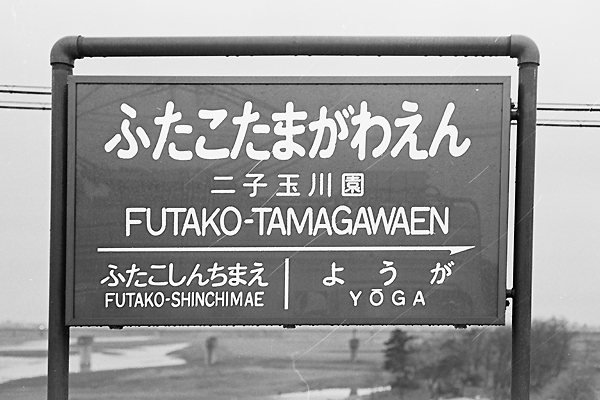 今回の駅撮りは前回から9年の時が流れた二子玉川園駅でございます。駅名の方は 未だ前回と同じ「園」付きでございますが、進行方向次駅は「ようが」となっております。 つぅ事は、新玉川線が開通したのでございます。この駅名票は上りホーム3番線側に 設置されていたヤツで、4番線側の次駅は大井町線「かみのげ」になってたんですよ。