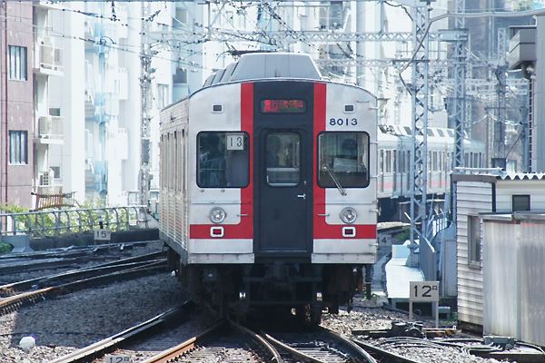 何をアップしちゃおうかっと毎週悩んじゃう駅撮り探検団、長考の末思い付いたのが、 最近2020系増備で数を減らしてきた東急8500系でございましたが、どうせやるんなら 思鉄らしくもう一世代前の車両の方がてんで、8000系駅撮りをアップしちゃいました。 ところがアップ画像を選んでたら、なんと1年前にも東急8000系をアップしちゃってた、 でも今更他の駅撮り考える時間もんも無いんで、違う画像使って強引にアップです。 先ずは再開発高層ビル群の藻屑と消えた、東急東横線旧渋谷駅4番線に停車中の 正面赤帯、80年代の標準塗装って言うか標準テープ8035Fの各駅停車桜木町行き。 東急東横線 渋谷 2002-1
