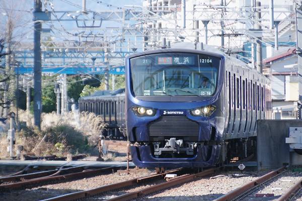 相鉄沿いの道路が、坂道に変わる付近でございます。道路と線路を遮っている白い 網のフェンスも坂に掛かる辺りからは、昔ながらのコンクリート製柵になっちゃうんで、 コチラの方が写真も撮り易いのです。ただし、光線は午後なると上り列車に対しては、 逆光になっちゃうんで、順光命の方は午前中が宜しいようです。それにしても、上げた 12000系の写真が、全て12001Fになっちまったのは何故なんだろ? 相鉄本線 海老名 2020-1 Photo by 団長 |