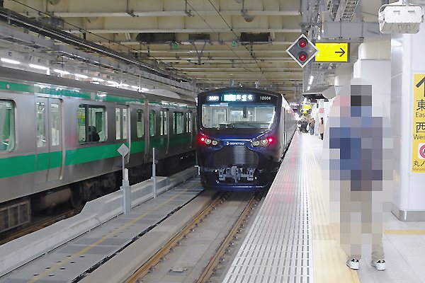 お次は終点海老名のホーム端より、相模大塚で撮った線内運用に入った12001Fを 駅撮りでございます。アップの写真見てのとおり、架線柱串刺しを気にしちゃうんなら 海老名での駅撮りは、止めた方が無難かも知れませんね。お奨めは東口でてから
