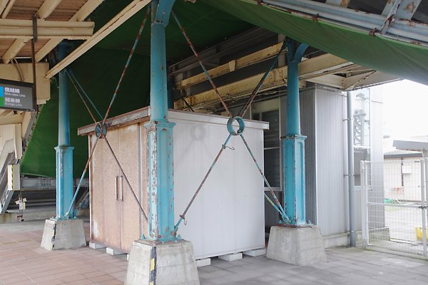 なんてぇ事考えながら後を振り向くてぇっと目に入ったのは、島式の2・3番線ホームを 繋ぐ跨線橋の橋脚が鋳鉄製だったのです。難しい事たぁ判りゃしないけど、この手の 建材は大概大正・明治時代の製造ってぇとこなんで、古いが大好きのアッシにとっちゃ 100年もの鉄道施設に巡り会えるてぇのは、115系撮るよっか嬉しい事なんですよね。 信越本線 柏崎 2019-9 Photo by 団長 |
