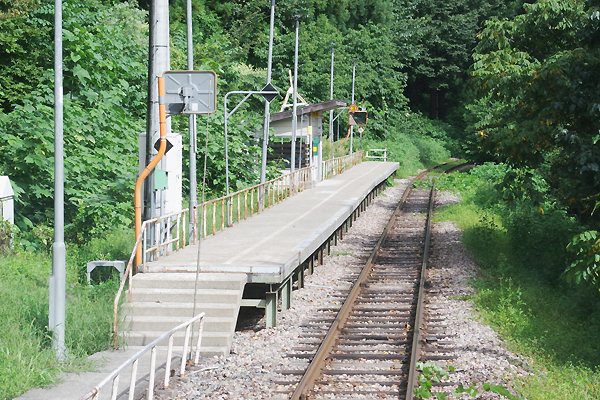 飯山線の駅の中じゃ一様秘境駅と呼ばれる足滝、もっともホーム端にある階段を下り 踏切渡って右側の法面を道なりに進めば、直ぐに駅直下にある国道に出られるんで、 列車からの見た目は秘境っぽいだけ、京葉線東京駅の方がヨッポド秘境駅なのです。