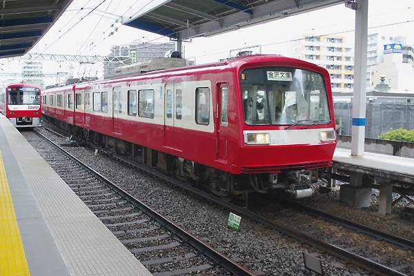 引退間近のセレモニーか、デビュー当時の色にカラーリングされた、エアポート急行 金沢文庫行き8両編成トップナンバー2011編成でございます。 京急本線 京急川崎 2018-3