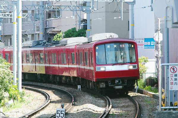 現在のエアポート急行のスジが未だ無かった頃は、横浜方面から空港線には特急が 運転され、アッシの記憶では、2000形4連が多かった様な。 京急本線 六郷土手 2005-5