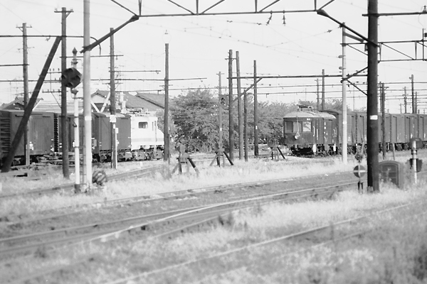 最後は豊鉄渥美線のルーツ渥美電鉄が、開業時に際して発注した日本車両御謹製の 単車デハ100を電動貨車に改造した、花田操車場の入換機デワ11と西武所沢工場製 デキ1000型(ED350型)の相対シーンでございます。 豊橋鉄道渥美線 花田操車場 1967-4 Photo by 松原の親方 |