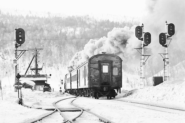 今年も早や師走となり北海道は根雪の季節、そこで今回は松原物故団員の残してくれた 銀塩を蔵出しスキャンでアップの駅撮りは、雪景音威子府C55 47号機321列車出発で ございます。撮影当時の321レの始発駅は余市駅早朝5:02発、函館本線札幌口での 始発列車でございました。そして、9時間30分後の14:32に音威子府に到着した321レ、 この日旭川から本務を受け継いだC55 47号機は、直ぐに編成から離れ給水に機体の 点検等々を受けるんです。15;20の出発までの停車時間52分は、俗にバ〇停なんて 言われててるけど、カマを動かす現業の方にとっちゃ、1秒も疎かに出来ないのです。