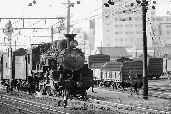 東海道本線も飯田線も電化さていたけど、貨物の組成も発着も当たり前だった昔は、 入換用蒸気機関車も駅撮りで来たのでございます。写真はその入換機C50 109号機、