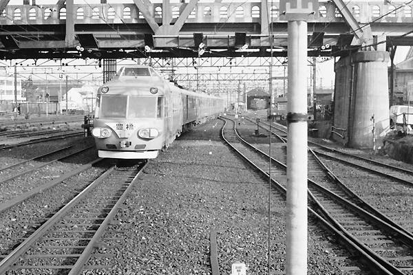 次に入って来のは、車体色失敗作ライトパープルの為に形式番号が判読不能だけど、 おそらく戦後初の新造特急専用車3850系だろうと、台車も厳ついゲルリッツぽいし。