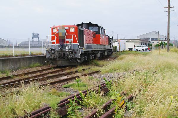 通過した先まで引き込むとカマは一旦タキから離れ、道路沿いの線路を専用線との