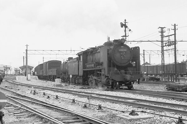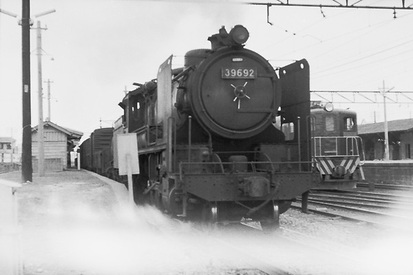 首都圏のジ〜サン鉄ならミンナ知ってる、川越線のカマと言えば、大正生まれの古豪 「大」のキューロクこと9600でございます。その「大」39692の貨物レが、丁度出発した とこ、E233が3面2線のホームに発着している現在からは、全く想像できない半世紀前 非電化時代の川越駅構内風景、進行現示で腕木が下がってる出発信号も懐かしい。