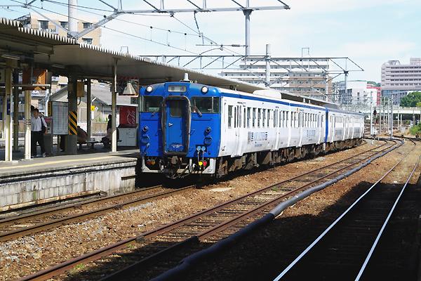 現在じゃDENCHAなんて訳の分かんない、官製ニックネーム付けられた蓄電池車の BCE819系に追っ払われちゃったけど、アッシが香椎で駅撮りした7年前(2014年)は キハ40系ばっかでございました。香椎に着いて最初にスナップした画像はキハ40系 4連、AQUA LINERのロゴにブルーの妻面が、香椎線を走る証でございます。しかし、 3番線に到着したキハ47を撮った時刻は、Exifで確認すると10:23でございました。