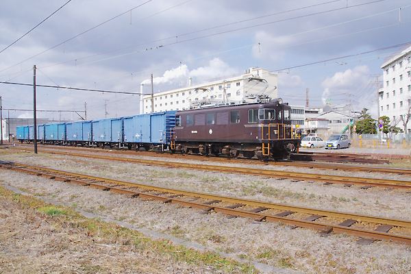 EL120型電気機関車の新造によって残念ながら廃車となった、大江駅に常駐していた デキ600型603号機でございます。このデキ600型は、伊豆箱根鉄道駿豆線ED30型と 同じ東芝戦時標準設計型電気機関車なんですよ。 名鉄 常滑線 大江 2008-5