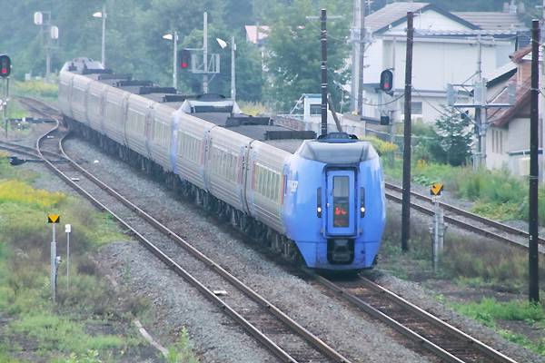 十勝鉄道のDE10が走り去って暫くすると帯広方面からキハ285系特急「おおぞら」が、 2番線に進入交換待ちで運転停車いたしました。さぁて、交換相手の列車は如何にと