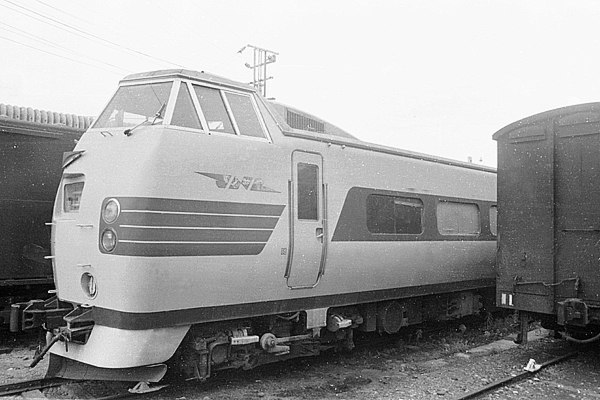 国鉄時代から特急列車用として2023年現在、唯一伯備線岡山〜出雲市間「やくも」の 定期仕業を維持している、381系振り子車も2014年で引退となりました。そんな事で、 今回の駅撮り探検団は、名誉団長が国鉄長野駅でスナップした、381系の生みの親 クモハ591系振り子試験車をアップ致しました。初造時は、3両連節車だった591系で ございましたが、長野に来たときは、クモハ591+クモハ590のMc+Mc2両編成でした。 上り側のクモハ591の前面形状は、非シンメトリーな窓配置のほぼ平妻タイプの車体、