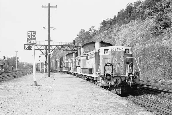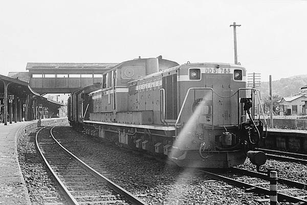 そして、104レ急行ニセコ2号は、中線に停車中の下り貨物列車と交換でございます。 それから、DD51のフロントグリルんとこに出てる、斜めの光線引きにゃご勘弁の程を。 デジと違って、フィルムてぇなぁ、ビンボ〜鉄の懐にゃ結構な負担だったんで、普通は 缶入り100ft長尺フィルムを買って、一緒に空パトローネも貰い、それをデイロールで 巻いて撮影してたんで、光線引きやらネガキズのリスクてぇなぁ、承知の助でした。