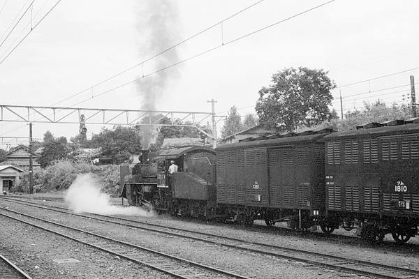 上り山側の側線を見るてぇっと、ナントC56が野菜臨貨のツムを従え入換の真っ最中、
