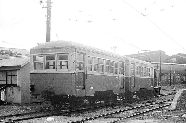 駅廃前回最後のコメとおり、今回も銚子電鉄開業49周年当時に仲ノ町で撮り出来た、 当時の銚子電鉄旅客用車両オールスターでございます。今じゃデキ3を除いてオール 電車でございますが、半世紀前にゃ客車もラッシュにゃ稼動してたんです。入換機は、 客車2両の前に見えてるデキ3、でも本線上は電車牽引だった様な。この小さ単車は、 開業時新製配置した合造車のハコを載せ替えた、更新車ハフ2とハフ1でございます。