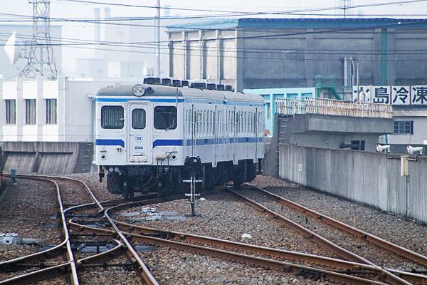 最後の交換可能駅水島を出発して終着三菱自工前に向う、アッシが新倉敷から乗車 して来た、キハ20形208号+204号2連をホーム中間からのスナップです。なお、水島 下りホーム端にゃ、建造物が在るんで駅撮り不可能でございます。お目当てのキハ20 国鉄色は、撮れなかったけど、今なって考えりゃ水臨色キハ20、撮ってって良かった。 だって、国鉄色のキハ20なんぞ、現役時代に散々見てきたんだもん。 水島臨海鉄道 上 西富井 中 弥生 下 水島 2006-8 Photo by 団長 |