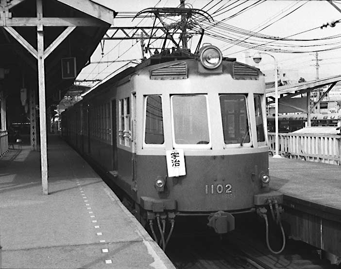 1968,3 京阪三条にて 宇治行き各停の1100系は、1937年びわこ号60系につづく流線型として製造され、