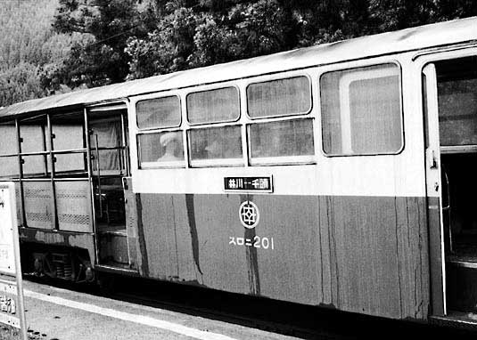 千頭にて スイテ821、西武のサハ1515を譲り受け自社の改造により誕生した展望車。 |