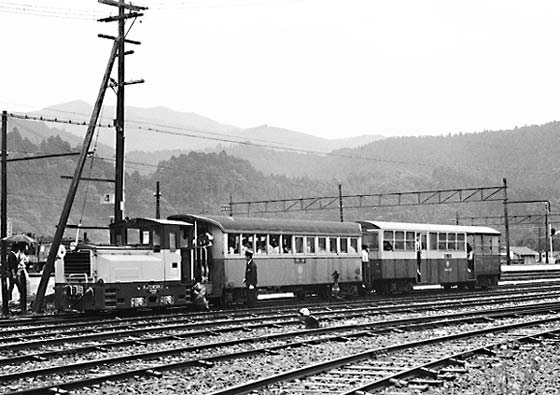 千頭を出発する加藤製DB1形牽引列車 おそらく奥泉までの区間列車。