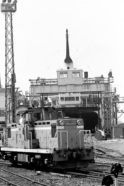 青函連絡船をバックに入換えする DD13 517号機 。
