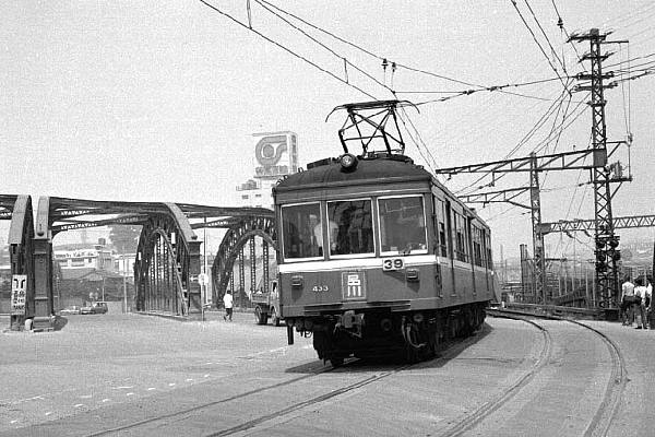 今も昔も変わらない、八つ山橋の平面交差を通過する京急デハ420系。