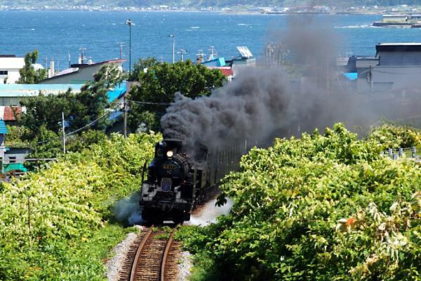 日本海を背景に入れて撮れる、お気軽ポイント箸別の陸橋、爆煙のオマケ付き。