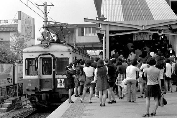 と言う事は、きっと美しかった筈のオネ〜サン達も今や立派なオバサンなんですね。 そのオネ〜サン達を運んできたのがホームに停まっているモハ100形電車、親分の 京成から譲渡されたセコハンながら25両と言うまとまった両数で、中小から準大手に 脱皮しようとしていた新京成の輸送に貢献した車両でした。オジサン鉄は新京成と 言われて先ず頭に浮かぶのがこのモハ100形じゃないでしょうか。現在は出入庫時の くぬぎ山行き・ラッシュの新津田沼行き以外に線内折り返し列車設定が無い新京成も この頃は松戸口から写真の五香行き、津田沼口からは鎌ヶ谷大仏行き区間列車が 2本に1本の割合で設定されていたんですよ。そして、その行き先を表しているのが パタパタと呼ばれている捲り形式の行先板、白抜きのデザインも親方京成と同じ様に 行き先別になっていました。ところで、この電車の番号「111」のゾロ目なの分ります? 昔も今もこういう番号の車両に会うとナントナク嬉しく成っちゃうんですよね。 新京成電鉄