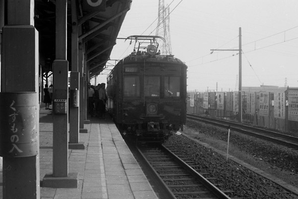 先週の駅撮りは南武支線の「八丁畷」、んじゃ上り方面の隣の駅ってシッテますか? ハイそのとおり「尻手」ですね。なので今週の駅撮りはソノ「尻手」なんでございます。 ただ、隣の駅は駅でも写真の方は一様思鉄なんで、距離と時空を超えた40年以上 前の「尻手」でショ〜ブしちゃいまっす。上屋を支えるは木製支柱、ソノ柱には灰皿と 筆文字で「くずもの入」と書かれた半円筒のゴミ箱が交互に付けられた敷石の3番線 ホームに停まっているのは、短距離盲腸線御用達、懐かしの両運旧国のクモハ12。 こんな光景を眺めると思わず’昔は良かった〜’なんて呟いてしまうのはオジサン鉄の 単なる懐古趣味なんでしょうかねぇ?でもねぇ、写真が汚っくてよく見えないですけど、 クモハ12に挿してあるサボ、行き先表示は「浜川崎−尻手」チョークで書いた手書き なんですよ。ヤッパ、’昔はよかった〜’ですよね。こうなると、8年前2002年に101系が 205系に変わるって、散々騒いだのがナンカ惨め思えちゃう。 南武支線 尻手 1968-8 Photo by 団長 |
