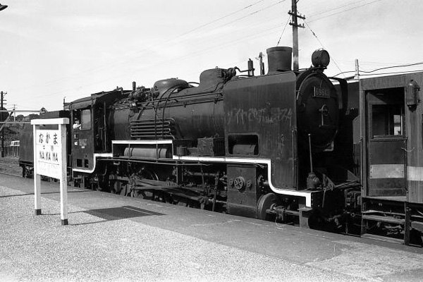 ![]() 筑豊本線の「中間」駅、っと言っても別に路線のチュウカンあるわけではなく、福岡県 中間市にあるからですね。JR九州になってからは、運転系統から篠栗線などと合せて 「福北ゆたか線」と呼ばれるようになったけど、宇都宮線・京都線の様に、強力(?)な 通称でないので、地元以外は判りにくいとかも知れませんね?70年代の筑豊本線は 石炭列車のメッカ、黙々と黒い石炭車を牽く蒸気機関車は地味ながらなかなか興味の 散見した頃。労使間の争いが恒常化して、組合が車両にスローガンを書き、当局は 消すというイタチごっこ。ホームに運転停車中の9600のデフにも、とりあえず消したと 言わんばかりに、「ダイヤ改正(改悪?)粉砕」と読めるスローガンの残骸が薄く残り、 二軸石炭車のセフ1型も、今となっては遠い昔の夢物語の様に思えてきました。 筑豊本線 中間 1973-8 Photo by むさちゃん |