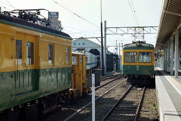 廃止後一部の車両は終点の月潟駅跡に保存 収まったモハ19型と仲間達、新潟交通の長閑な終点風景駅撮りです。 新潟交通電車線 東関屋 1997-4 Photo by カモ |