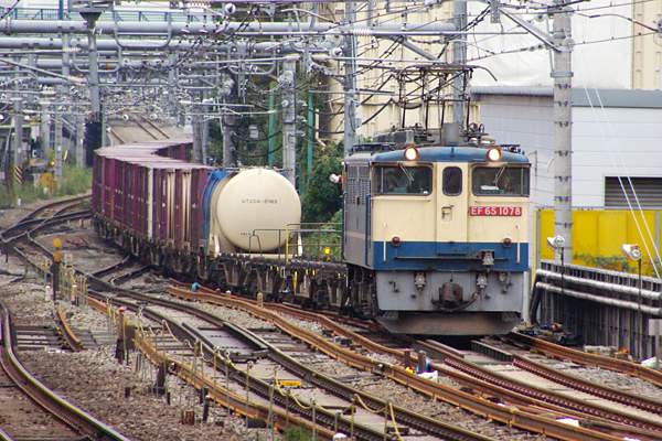 今週の駅撮り探検団は山手線シリーズ第4弾として、五反田を御紹介でございます。 山手内外回り線に囲まれた、一面の島式ホームは新宿方面に向かって左カーヴを 描いているので、大崎方向にレンズを向けると山手線外側の貨物線を走る列車が 中々宜しい感じで、撮ることが出来るのでございます。レンズの焦点距離も望遠も ワイドもお好み次第なんです。望遠の場合は35mm換算300mm位あれば池上線の 高架ホームを抜いて大崎〜五反田間を走行する列車が串刺しレスで撮れますよ。 山手貨物線とは名ばかり、通過するのは銀箱E231と205系ばかりなんで、目標に 今回モデルにした、1日数本しか通らない貨物列車の中で、オジサン鉄には嬉しい EF65が牽引する2077レなんていうのは如何でございましょうか。時刻も10:40から 10:50(貨物レなんで時刻は当然アバウトがお約束です)くらいで、お寝坊さんにも ピッタリですね。 山手貨物線 五反田 2009-11 Photo by 団長 |