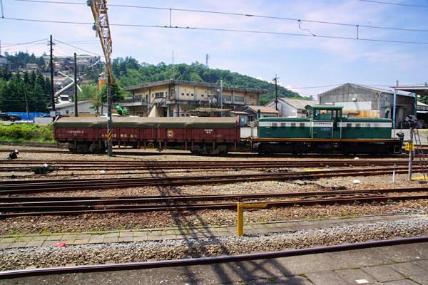 少し前までEF81のトップアイドル カシ釜が運用に入って、そのスジでは人気抜群の 貨物列車5781レの終着駅安中が今回のお題でございます。鉄の間では安中貨物の 通称で呼ばれているのは、5781レの終着駅からきている訳なんですね。福島臨海の DLから泉でJRのカマにバトンタッチした、トキ25000を連た5781レが安中に着いて、 貨車を開放した後に活躍したのが写真の安中運輸の入換機DD352でございました。 「活躍した」っと過去形で書いたように、現在はDB301という2010年製造のピカピカの 後輩に任を譲ったそうです。DD352の方は1969年生まれ、車齢40年ですから引退も 妥当なところしょうか。カシ釜を先頭にした安中貨物、ソレハそれで十分鉄な魅力に 溢れているけど、本線に出る事も無く、一生を側線で暮らしたスイッチャーDD352に 何故かシンパシーを感じてしまう思鉄でございます。 信越本線 安中 2010-7 Photo by 団長 |