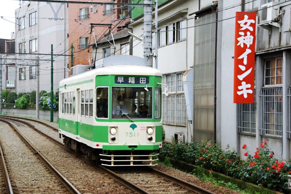 花電車運行で話題沸騰の荒川線に肖って、「荒川区役所前」での電停撮りをご紹介。 チョイット角ばちゃったけど、国道246を闊歩した青山車庫時代も懐かしい7500形。 残念ながら今年の春(2011年)最後の2両が肩タタキされて仕舞いましたね。しかし、 今回の主役は7500形に非ず、線路際にあるひときは目立つ「女神インキ」の看板で ございます。それにしても、このコピーに強烈な存在感はどこからくるのでしょうか? 決してオジサン鉄の郷愁だけでは無いと思うのでございます。一歩間違えればベタな 看板になるところを救ったのは「インク」を「インキ」と綴ったところが肝だと思います。 鉄的にも線端に建つ木造モルタル鉄格子、如何にも昭和の町工場の壁面に付いた 看板の横を都電が通るシチュエーションが堪らないのでございます。 都電荒川線 荒川区役所前 2009-6 Photo by 団長 |