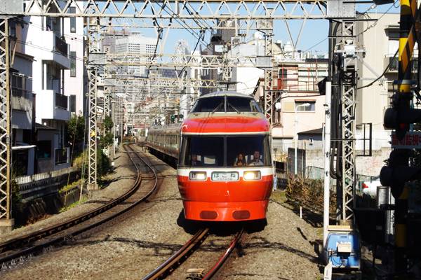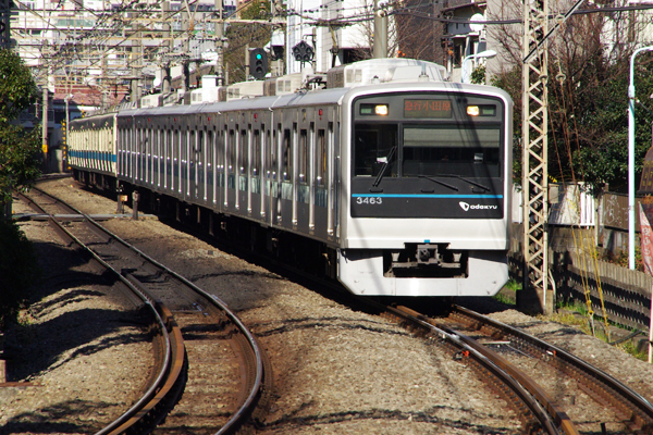駅撮り写真は掃いて捨てるほど有るんだけど、くっ付ける駄文を考えるのが苦労の 種なのでございます。そんな時は下手なコメントより下手な写真っと言う事で今週の 駅撮り探検団は誤魔化しの拡大ヴァージョンでお送り致します。松も取れた今年の 1月(2011年)、EF510に換わったはずの安中貨物にEF81カシガマが入るとの情報を 得て、M団員とご近所鉄の一日。安中貨物は三河島通過15時頃なので、それまで 何処かで駅撮りでもと、思い付きで来たのが小田急線代々木八幡。この駅の下り ホーム新宿より先端は超有名ポイント、早速LSE7000形原色をゲット、ヨッシャ〜 小田急小田原線 代々木八幡