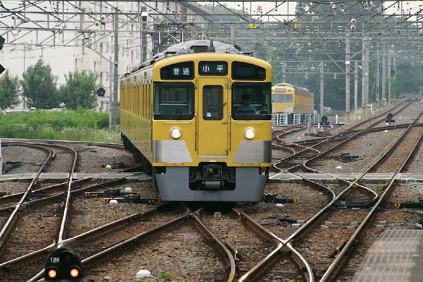 駅撮りファンの皆様、明けましてオメデトウございます。正月最初の駅撮り探検団、 なにか目出度い駅撮りでもと思いましたが、そんな都合の良い写真は持ち合わせが ございません。なので、正月となんの関係も無い西武の萩山で撮った2000系などを ご覧頂きます。西武鉄道の東村山を頂点に新宿線・拝島線・多摩湖線・国分寺線が 交差する狭い区域には平面交差のジャンクションが萩山を含めて4つもあるんです。 運行管理の観点からは百害あって一利なしの施設なんですけど、鉄な人にとっては 宜しい眺めなのでございます。ダブルクロスにダブルスリップ、絡み合うレール上を 左から右へ横断してホームに進入する列車、音を聞いても撮っても良しなんですね。 以上、頭だけは年中オメデタイ思鉄が御贈りする、今年最初の駅撮りでございます。 西武鉄道拝島線 萩山 2005-6 Photo by 団長 |