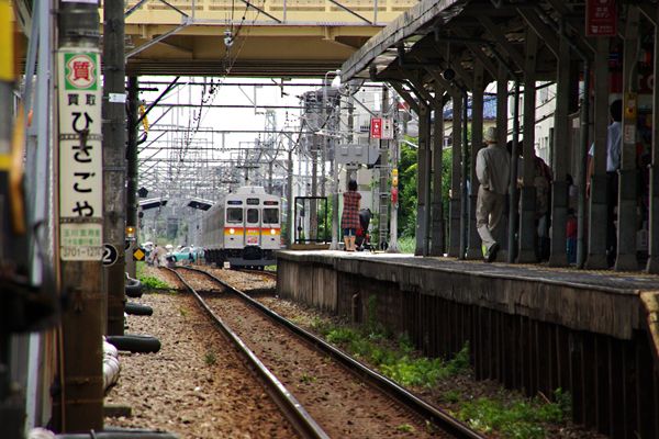 東急大井町線九品仏〜等々力間は、駅間距離も短く線形もほぼストレート、前の駅を 発車した列車がよく見える、私鉄には在りがちな線でございます。写真左奥に見える 上屋が相対式ホームの尾山台、駅はリニューアル済みです。そして、右に見えている 木製支柱が連なり、見るからに古そうな駅がこの写真を撮った等々力でございます。 2008年の急行運転開始や翌年の終着溝の口延伸になど、混雑度ワースト10常連の 田園都市線バイバス対策で殆んどの駅はリニューアル済みや中の大井町線ですが、 等々力駅だけは、時の流れから外れた様に古きよき時代のままなのでございます。 って古いが好きのオジサン鉄は喜んだけど、よく聞きゃ急行運転に伴い地下化して 待避線を造るツモリだったら、等々力渓谷の地下水源やら自然破壊なんかの問題で 未だ工事にかかれない様子。昔のままの駅風景が残っているのは宜しいと思うけど、 ナ〜ンカ動機が不純 ・ ・ ・かな。 東急大井町線 等々力 2009-6 Photo by 団長 |