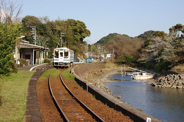 駅撮りと申しますと普通は、ホーム先端から駅に進入して来る列車なんぞを撮る事が 多いですね。そこで、たまには視点を変えて進入経路とは反対側のホーム中程から 先端部の間で好みのアングルを見つけ、駅施設と車両を絡めたシーンを頂くカットは 如何でございましょうか。そんなシチュエーションにピッタシなのが、天竜浜名湖鉄道 浜名湖佐久米駅なのでございます。低い石積みの片面ホームに小さな駅舎、そして ホームの反対側もコレマタ石積みの岸壁、漣の水面は古来より近つ淡海の琵琶湖と 並び称された遠き淡海こと浜名湖なのでございます。ねっ、ちょっとノスナルジックな 背景でしょ?これで、写ってんのが10系気動車なら最高なんですけど、ソコハ厳しい 3セクで残ったという現実、TH2100形でも良しとしなきゃいけないんでしょうね。 天竜浜名湖鉄道 浜名湖佐久米 2009-3 Photo by 団長 |