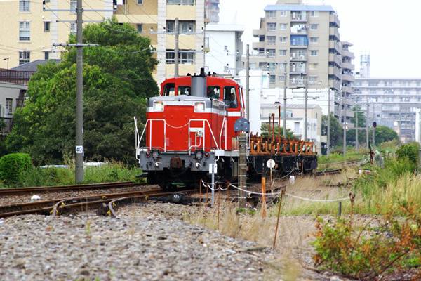 またしても登場、ホームも駅舎も無い面妖な駅撮りの正体は、越中島線小名木川駅の 成れの果てにて、激写したDE10のレール輸送貨物列車でございます。成れの果てと 申し上げた様にかつては幾条のレールが輻輳し、年間何十万トンの貨物が発着した 広大なヤードはショッピングセンターに変身、小名木川駅は廃駅となってしまいました。 今では僅かに残ったレール2条が、その面影を伝えているのでございます。貨物レの 後方に見えるのが恐らく出発信号、廃駅の為に当然出発信号未設置、ココから先は、 入換え扱となり操車掛の方が、手旗を持ってカマ前方デッキに乗り込み、永代通りに 行き交う車を停止させ踏み切りをユックリと通過して越中島に向かうのでございます。 メガロポリスに単線非電化貨物専用線のミスマッチ、B級な鉄道風景が宜しいのです。 越中島線 元 小名木川 2011-9 Photo by 団長 |