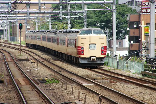っと思いつつ時計を見るともう直ぐ12時、山手線でお昼といえば、これもう金太郎さん EH500の3086レしかございません。問題は何処で3086レを撮るか・ ・ ・そうだ!まだ 撮った事が無い高田馬場だ。と言う事で高田馬場の目白寄りで待っていると、東チタ H81編成189系が、回送の幕で接近して参りました。そして、本命の貨物レは新宿より