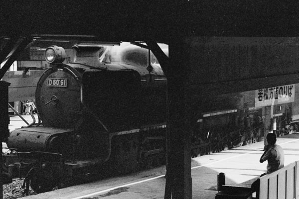 ここんとこ古ネタ駅撮りは、電車の登場が多かったので、たまにゃ現役蒸気機関車の 駅撮りと言う事で、直方に停車中のD60なんぞは如何でしょうか。筑豊といえば石炭、 石炭といえば蒸気機関車、その筑豊で蒸気機関車が集うのが直方駅でございました。 でもアップしたのは、そんな筑豊の情景とはかけ離れた、タダの駅撮りスナップ写真、 こんなのしか手持ちがないんでご容赦。しかし、写っているD60はD51なんかとは違い 当時でも運用されいた線区が限られていたので、結構レア、だけど地味なイメージの カマだったんじゃないでしょうか。そのD60一番の晴れ舞台といえば、此処筑豊本線の 冷水越えでしょね。だけど、行かなかったんですよ、折角直方まで来たのに、だって 真夏の九州暑くって暑くって駅撮りで御茶汚し、今考えると勿体ないことを致しました。 ところで、写真のD6061号機は僚機78両の中で、一番最後まで有火で頑張ったカマ、 今も綺麗にリストアーされ静態保存されています。 筑豊本線 直方 1973-8 Photo by 団長 |
